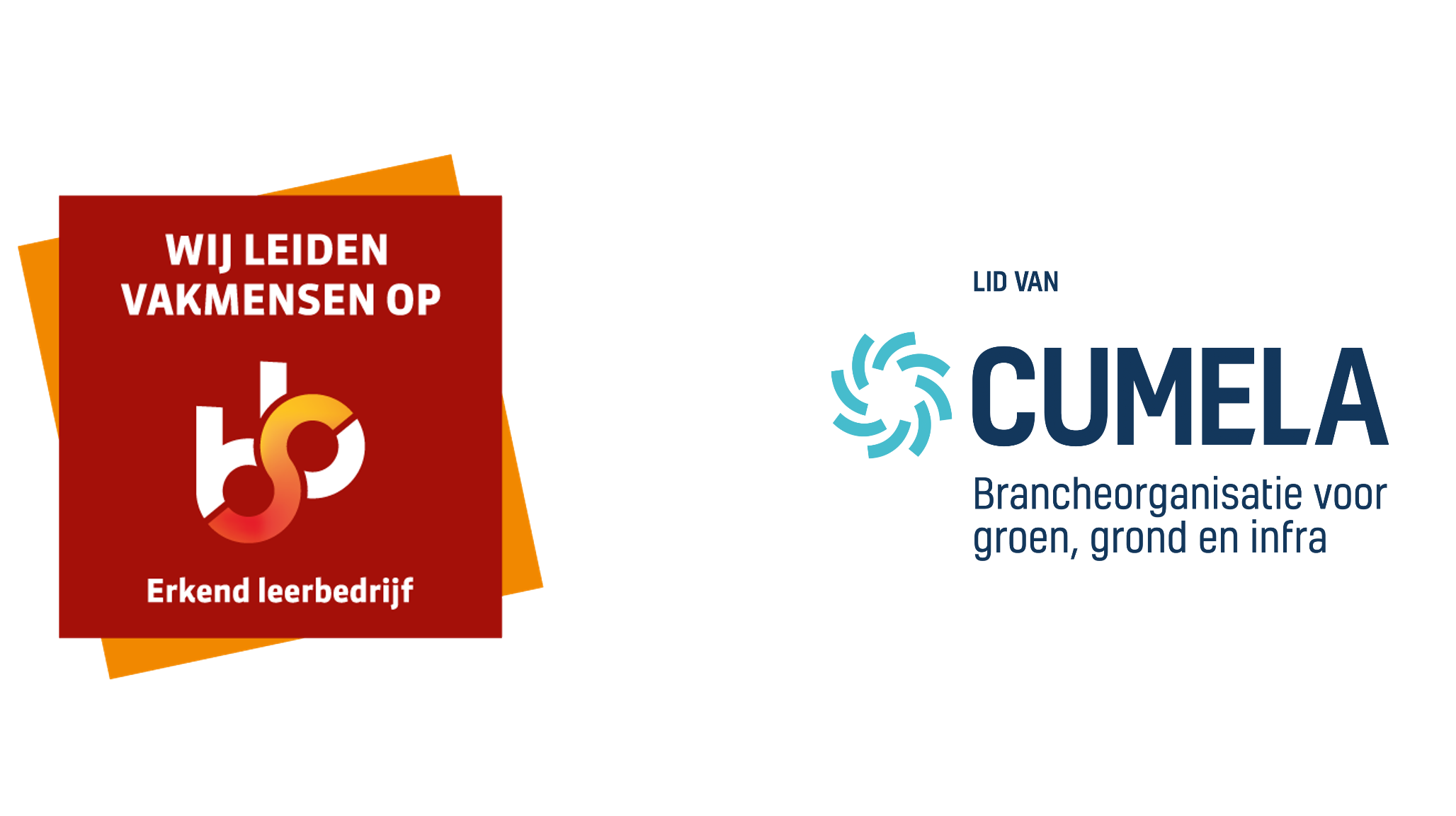 Wij zijn trots op ons lidmaatschap bij Cumela, de brancheorganisatie voor ondernemers in groen, grond en infra. Daarnaast zijn wij een officieel SBB-erkend leerbedrijf. Dit betekent dat wij leerlingen de kans bieden om praktijkervaring op te doen onder begeleiding van ervaren professionals.