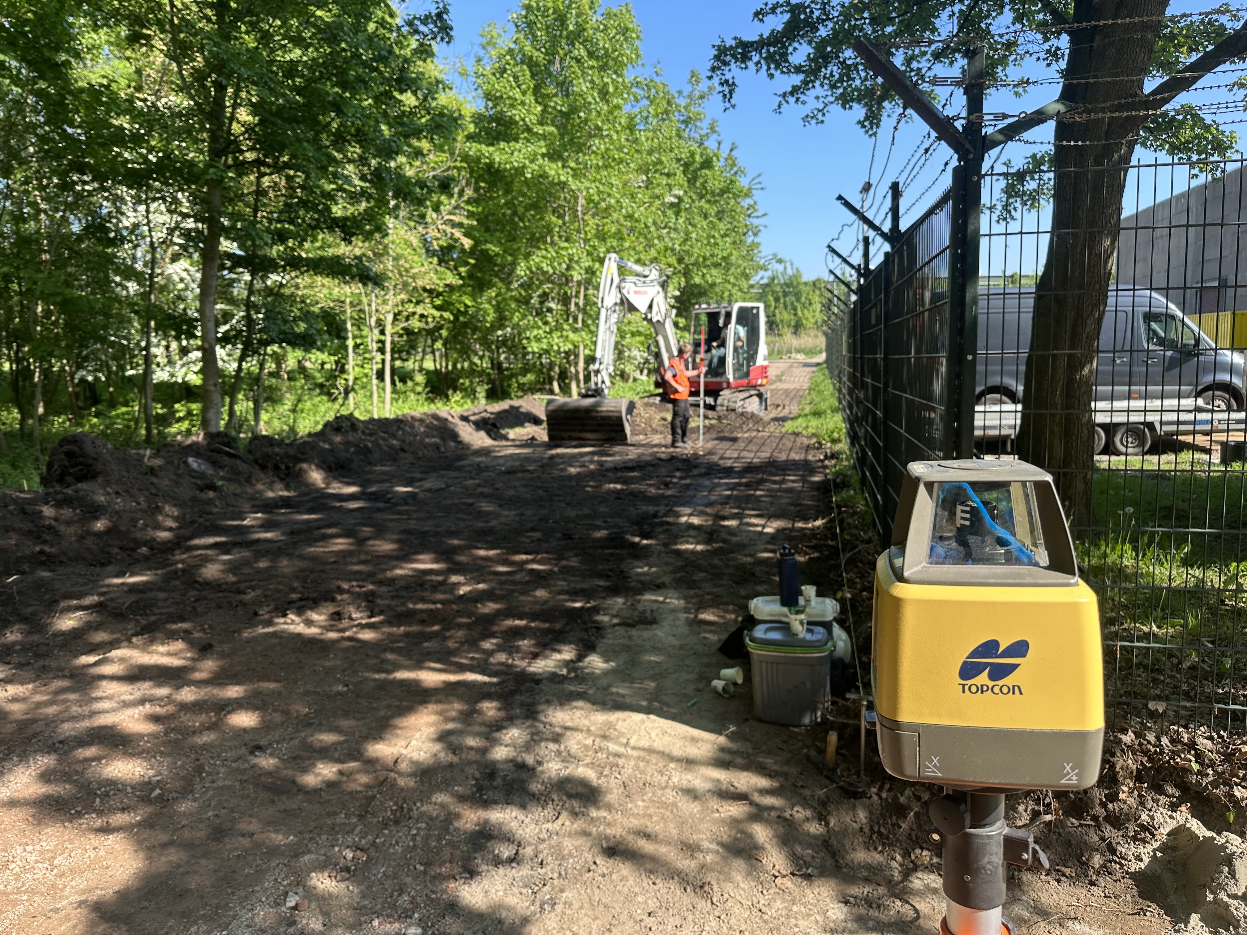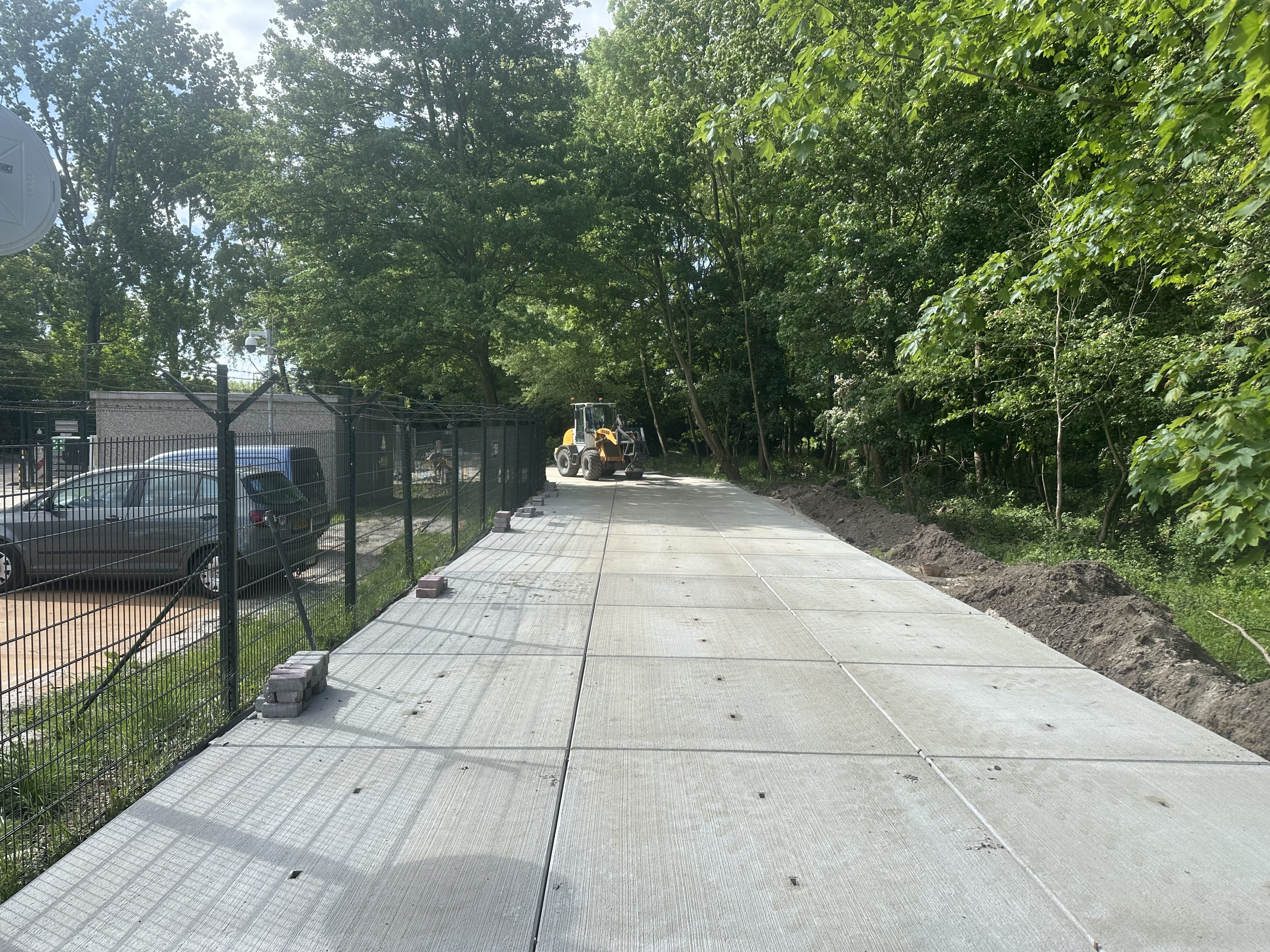 De werkzaamheden begonnen met het uitgraven van het cunet. Vervolgens hebben we het zand geleverd, aangebracht en zorgvuldig geëgaliseerd, zodat een stabiele en vlakke ondergrond ontstond voor de betonnen platen.