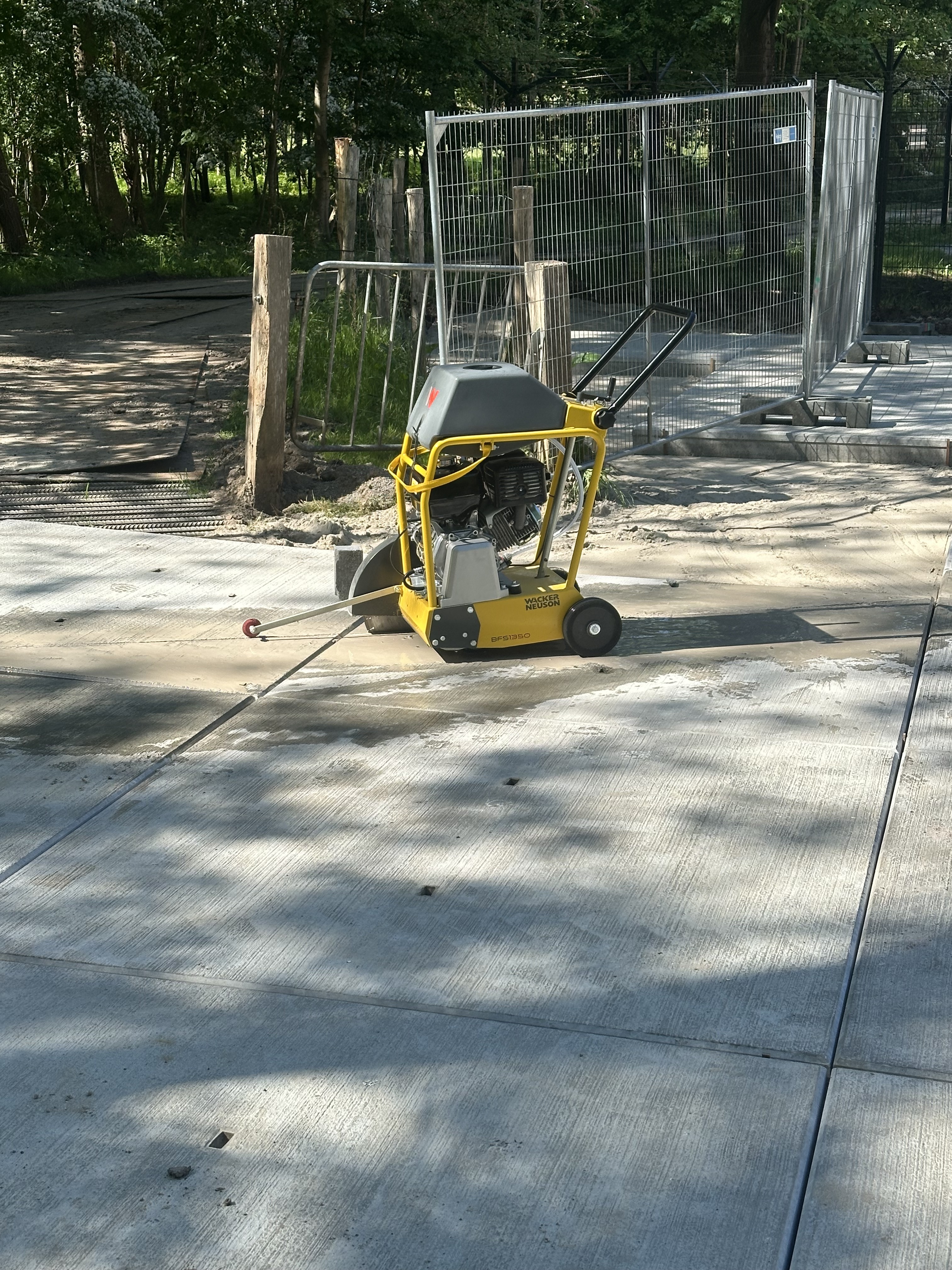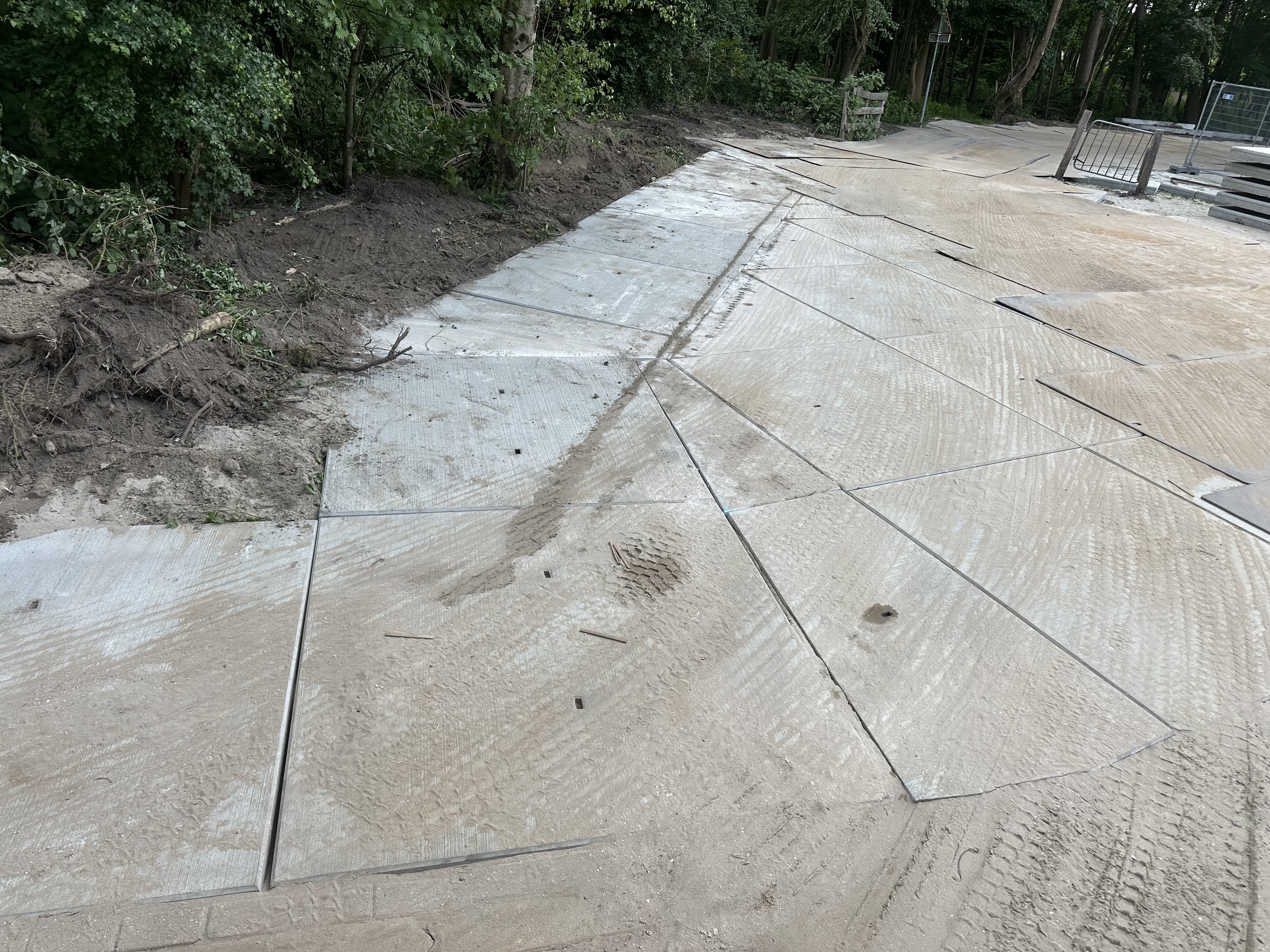 In totaal zijn 252 betonnen platen geleverd en gelegd. Om een perfect aansluitende verharding te realiseren, hebben we meerdere platen op maat gezaagd.